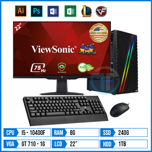 Máy Bộ Văn Phòng Core i5 10400F | 8G | 240G SSD | 1TB HDD | 22″ | VGA Rời